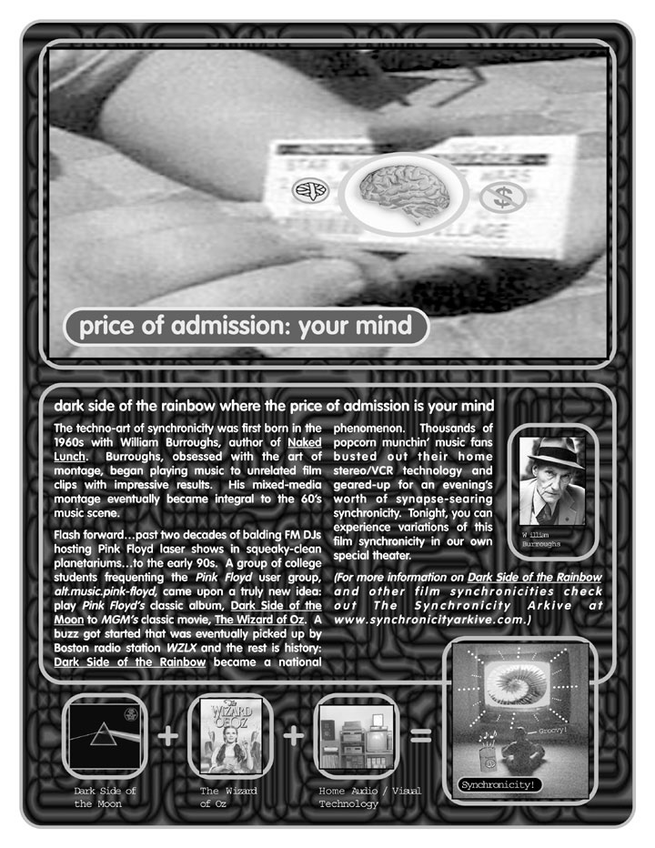 (For more information on Dark Side of the Rainbow and other film synchronicities check out The Synchronicity Arkive at www.synchronicityarkive.com.) |