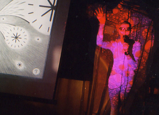 As a "psychedelic ocean virus-STD controlling chromosome-flow from species to species with one mega-assed mirror ball blast, ka-BOOM!" Thai Joe's, Sunshowers Of Day Dreams, January 25, 2000. Photo: Troy Freund.